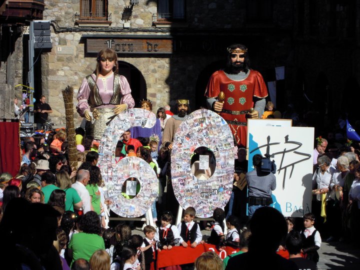 17 h Cercavila amb els geganters i grallers de Bagà pels carrers i places de la vila fins a arribar a la plaça Porxada.