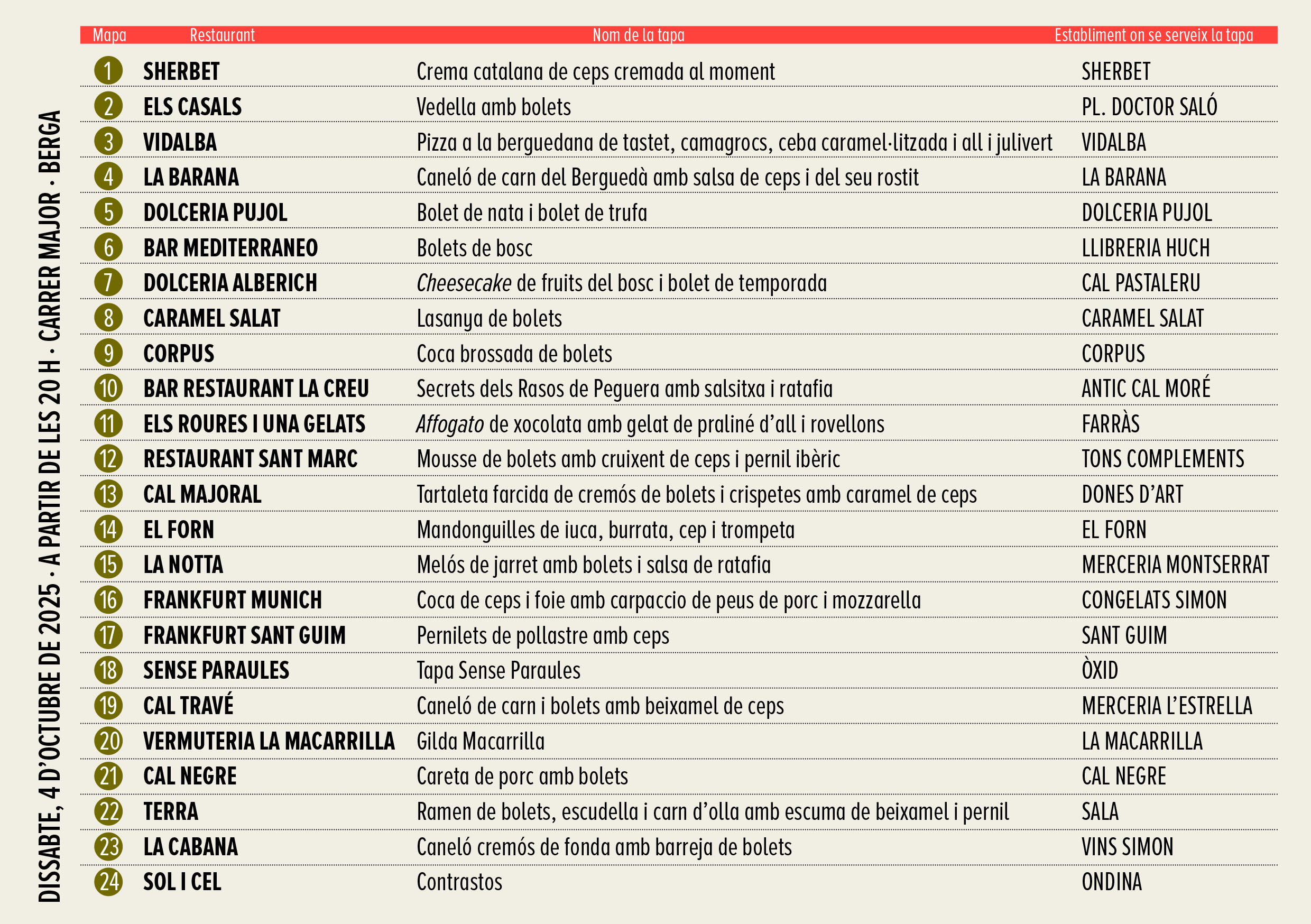 restauradors per tal de poder diversificar cues. Hi haurà un total de 24 propostes culinàries, que aniran des de la plaça Doctor Saló, fins a la plaça de les Fonts.