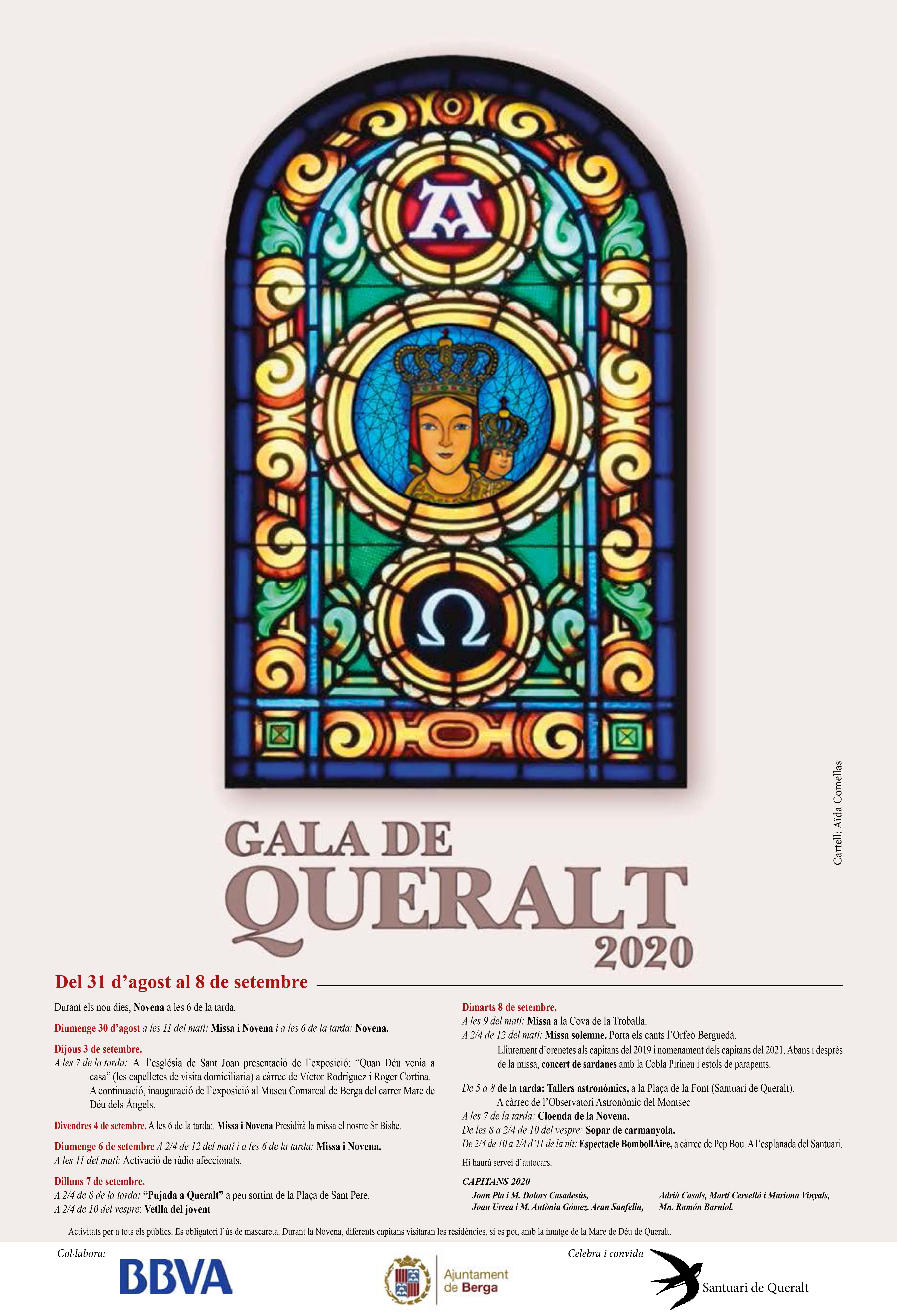 Berga es prepara per viure una nova edició de la Gala de Queralt. El 30 d’agost es van iniciar els actes de la novena amb la celebració de misses dedicades a diferents col·lectius de la població i també es va portar a terme una jornada per netejar l’entorn del santuari promoguda pels capitans i capitanes de Queralt, que va comptar amb la participació d’una cinquantena de persones. Les activitats prèvies culminaran el dimarts, 8 de setembre, amb la celebració de la Gala al Santuari de Queralt.