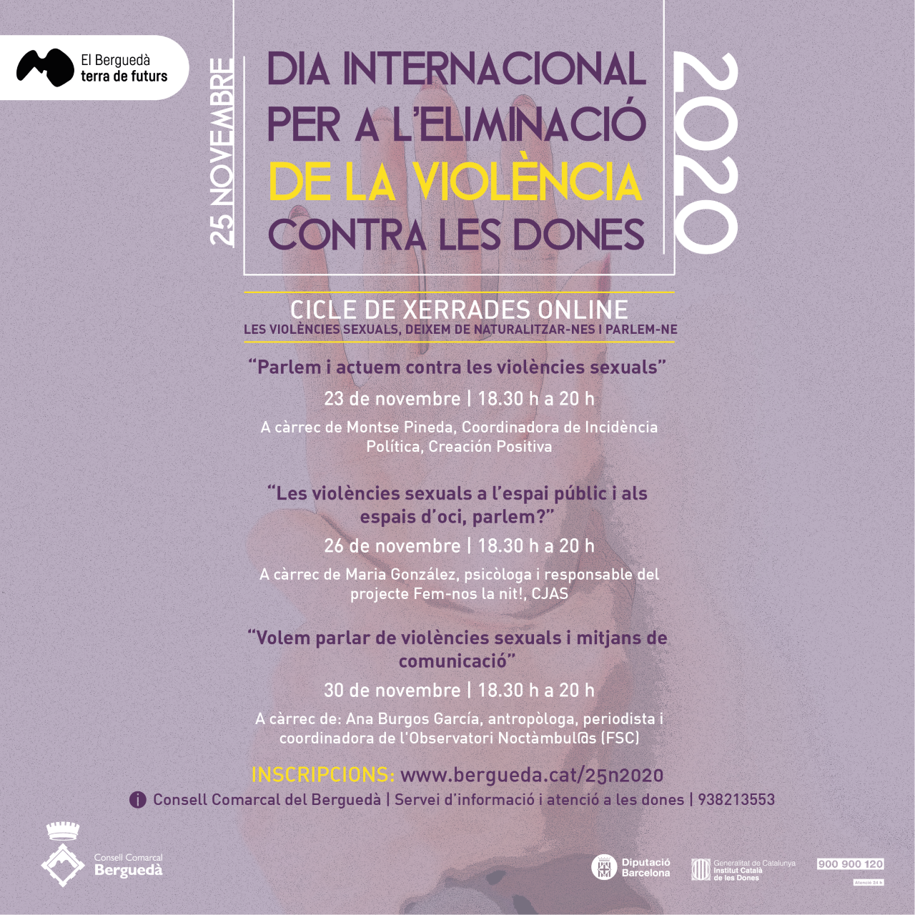 El 25 de novembre es commemora el Dia internacional per a l’eliminació de la violència envers les dones. Aquest any, es compleixen 60 anys de l’assassinat de les germanes Mirabal, tres activistes polítiques i membres actives de la resistència que van morir a mans de la policia secreta del dictador Rafael Trujillo a la República Dominicana mentre es dirigien a Puerto Plata, el 25 de novembre de 1960, per visitar els seus marits empresonats. En honor a elles, es va establir aquesta data com a Dia internacional per a l’eliminació de la violència envers les dones. Enguany, l’Ajuntament de Berga tornarà a sumar-se a la commemoració del 25N amb la programació d’activitats culturals i de divulgació promogudes per les àrees de Feminisme, Cultura, Joventut i Esports amb la col·laboració de l’Associació de Dones del Berguedà, la CGT Berguedà i l’Ateneu Columna Terra i Llibertat. Les propostes inclouen activitats d’art urbà, música, teatre, formacions i accions a les xarxes socials, entre d’altres.