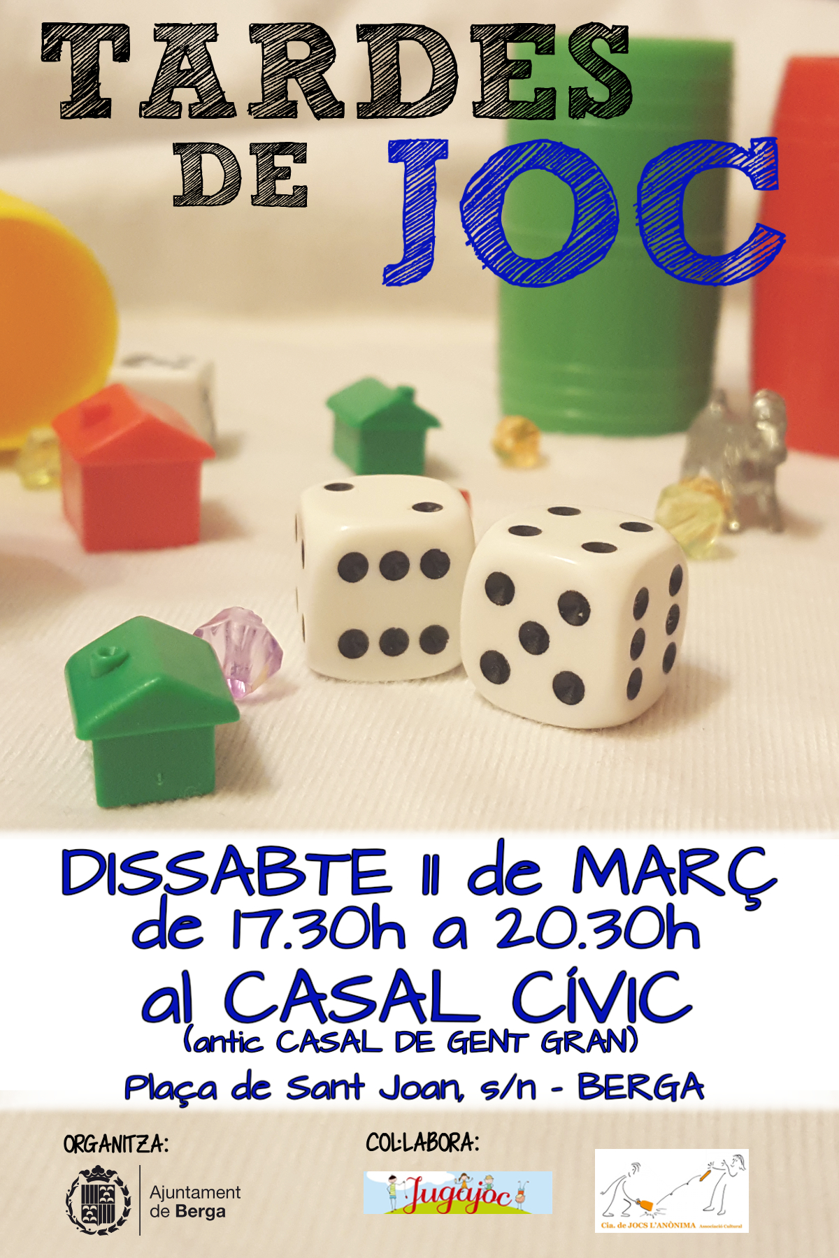 El dissabte dia 11 de març segueixen les ‘Tardes de joc’ gratuïtes al Casal Cívic de Berga