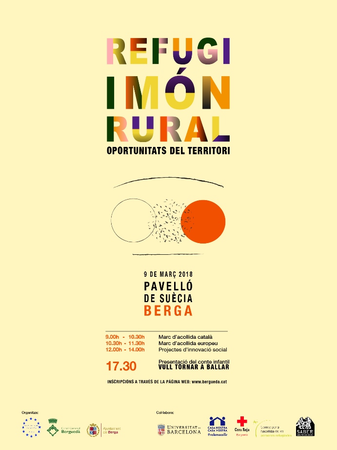 El Casal d’Europa, conjuntament amb el Consell Comarcal del Berguedà i l’Ajuntament de Berga, organitza una jornada entorn del refugi i les oportunintats del món rural. Divendres 9 de març de 2018, al pavelló de Suècia de Berga, es portarà a terme una jornada de reflexió i debat entorn del model d’acollida actual així com de les oportunitats que ofereix el món rural respecte l’urbà.