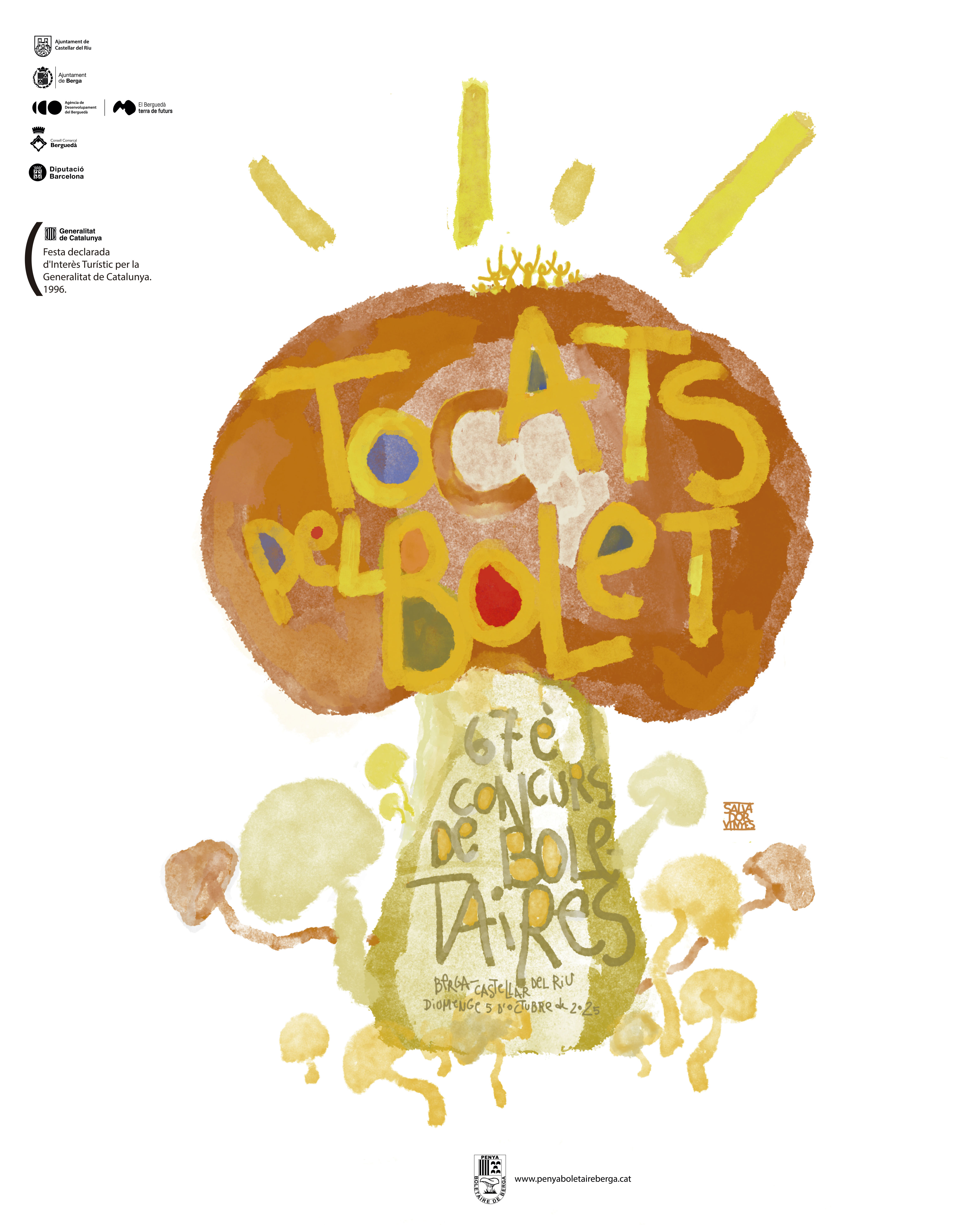 El cartell del 67è Concurs de Boletaires ha estat elaborat pel dissenyador berguedà Salvador Vinyes. La peça mostra un gran bolet amb el lema “Tocats pel bolet” al capell. Vinyes ha rememorat un record d’infantesa, quan anava a buscar bolets amb el seu pare i el seu germà petit, recollint bolets amb la sortida del sol. El dissenyador ha explicat que “anant a buscar bolets, quasi mai trobaràs el que vols, sempre et semblarà poc, però t’ho pots passar molt bé”. En referència al cartell, ha dit que “he buscat que fos colorit, maco i entenedor, sense pretensions. Pot agradar més o menys, però és maco i això és el que compta”.