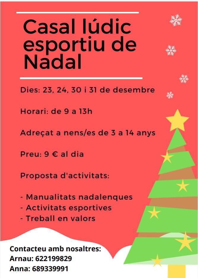 30 i 31 de desembre. Casal de Nadal. De 9h a 13.30h, espai de Casal on es realitzsran manualitats i diferents activitats per la quitxalla. Organitza: Arnau Pey. Lloc: Local del Comú/Local social.