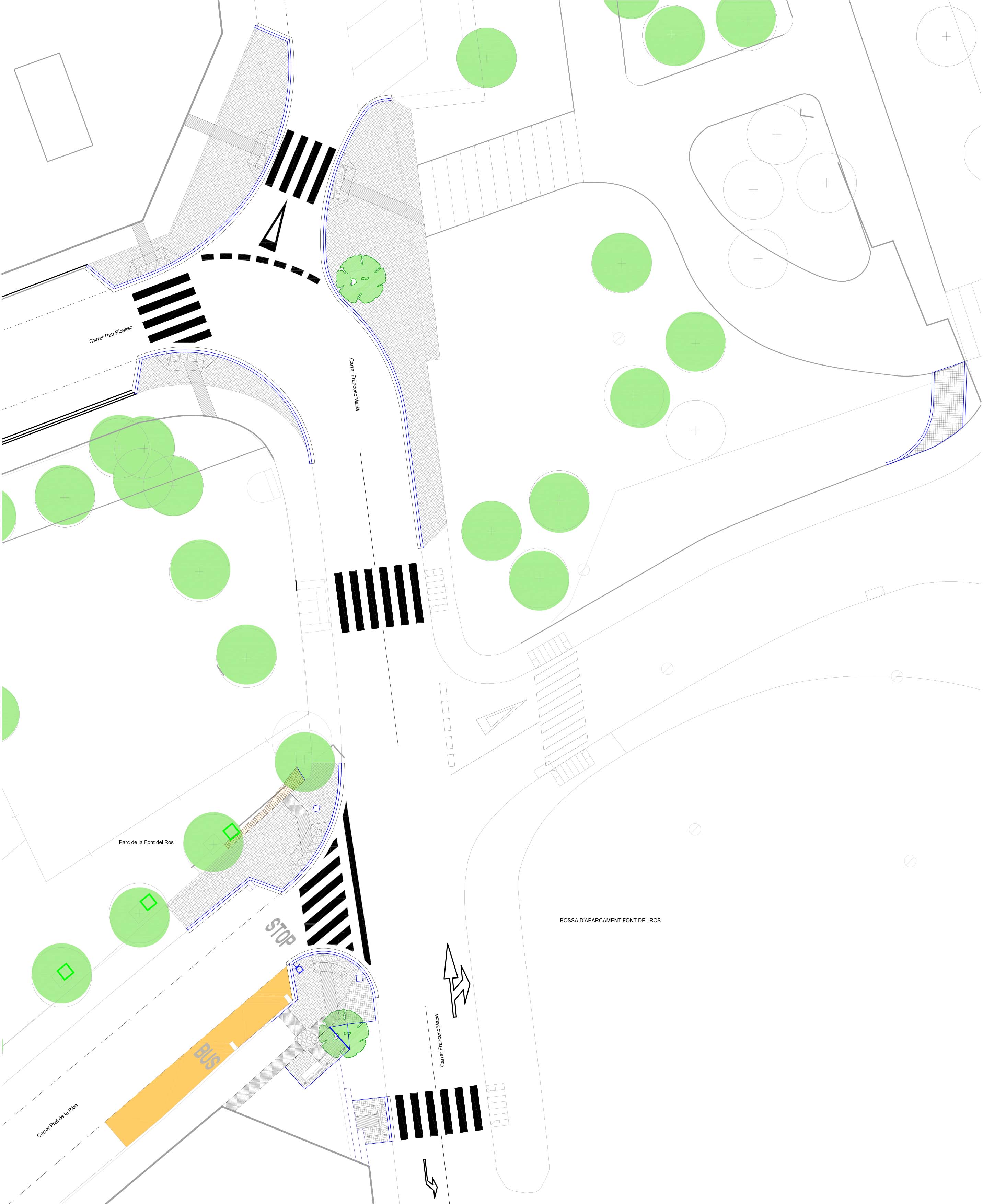Aquesta segona fase del projecte de millora de l’accessibilitat de la Font del Ros contempla l’adaptació i ampliació de les voreres del carrer Francesc Macià, des de la cruïlla amb el carrer Pau Picasso fins al carrer Prat de la Riba, juntament amb l’adaptació dels guals, per crear una circulació accessible per a tots els vianants. Es crearan unes “orelles” als passos de vianants per millorar la visibilitat en aquests punts i s’adaptaran per a fer-los accessibles a persones amb dificultat visual i de mobilitat. També es construirà el tram de vorera que ara és inexistent a la banda est del carrer Francesc Macià i es construirà un nou accés a l’extrem sud-est del parc de les Aubes, que actualment només resulta accessible a través de l’extrem nord. Finalment, es preveu la formació d’una parada d’autobús a la cruïlla entre el carrer Prat de la Riba i el Carrer Francesc Macià.