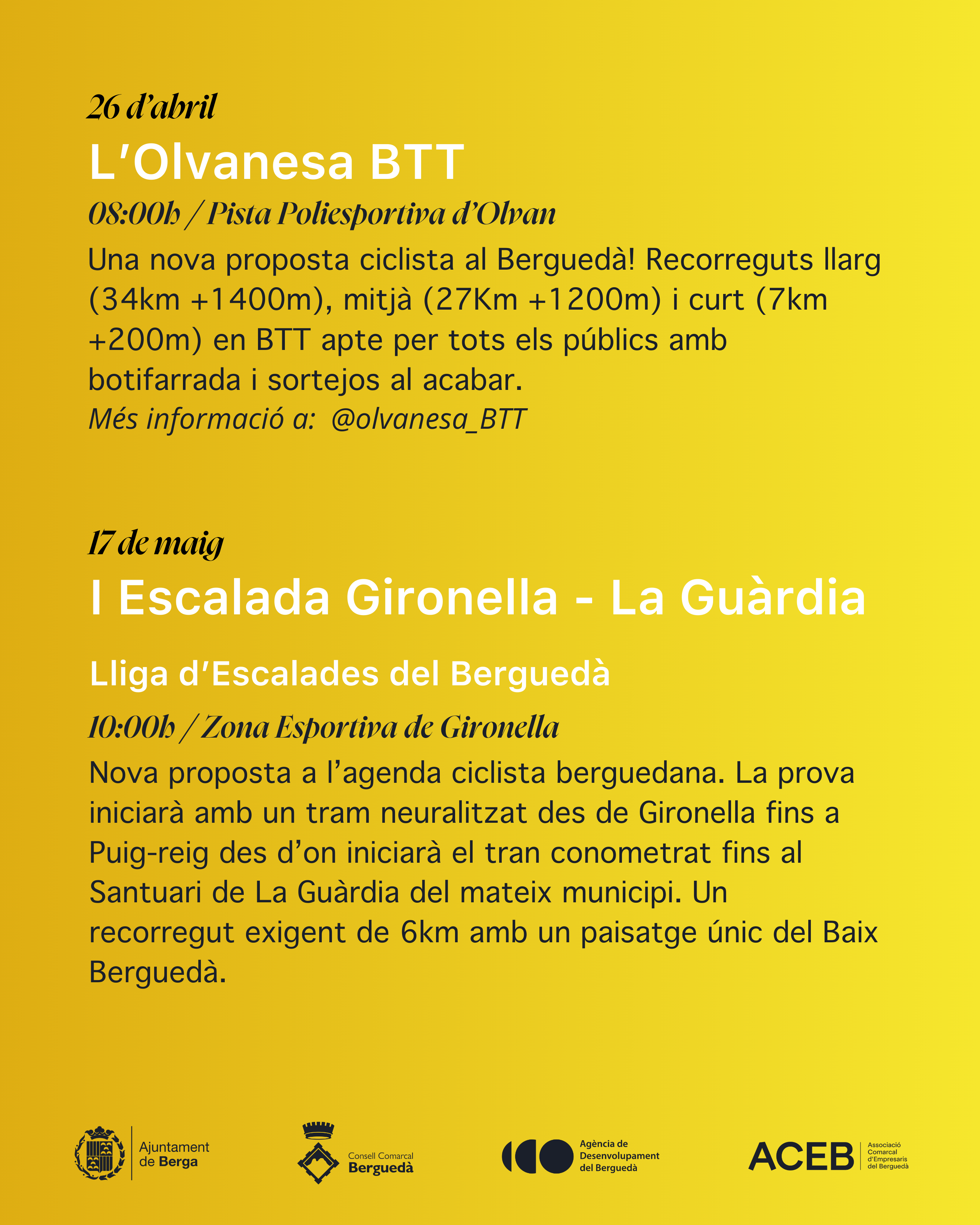 Aquests són els actes previstos de ciclisme a la comarca del Berguedà: