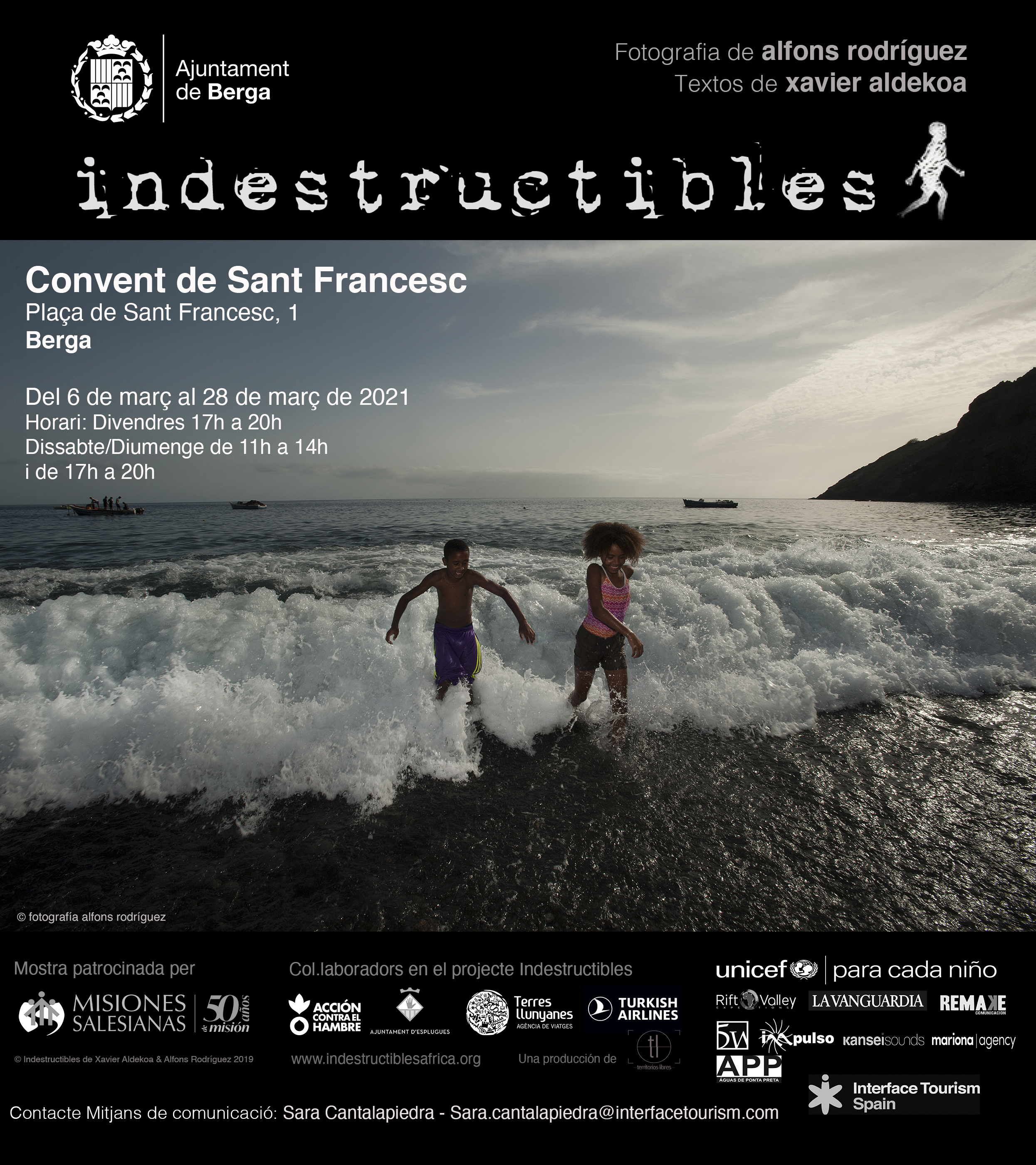 Àfrica és el continent del futur. És la regió del planeta on neixen més infants del món i també és el lloc on milers de nens i nenes estan exposats a viure situacions difícils i traumàtiques. La guerra, el terrorisme, la pobresa o els efectes del canvi climàtic són alguns dels principals problemes que afecten milions d’infants africans. Àfrica també és el continent del canvi. Els avenços en l’educació, el creixement econòmic, la irrupció de la tecnologia o la lluita dels moviments feministes africans estan transformant la realitat del continent. Al llarg de més de 2 anys, el fotògraf Alfons Rodríguez i el periodista Xavier Aldekoa, han documentat onze històries de nens i nenes d’una desena de països africans a través del projecte transmèdia ‘Indestructibles’. La iniciativa inclou una exposició fotogràfica que mostra les històries d’infants que han patit situacions complexes, però que gràcies al seu esforç, perseverança i resiliència han seguit endavant, tot i que no sempre ho han aconseguit. El Convent de Sant Francesc acull aquesta mostra que es podrà veure del 6 al 28 de març.