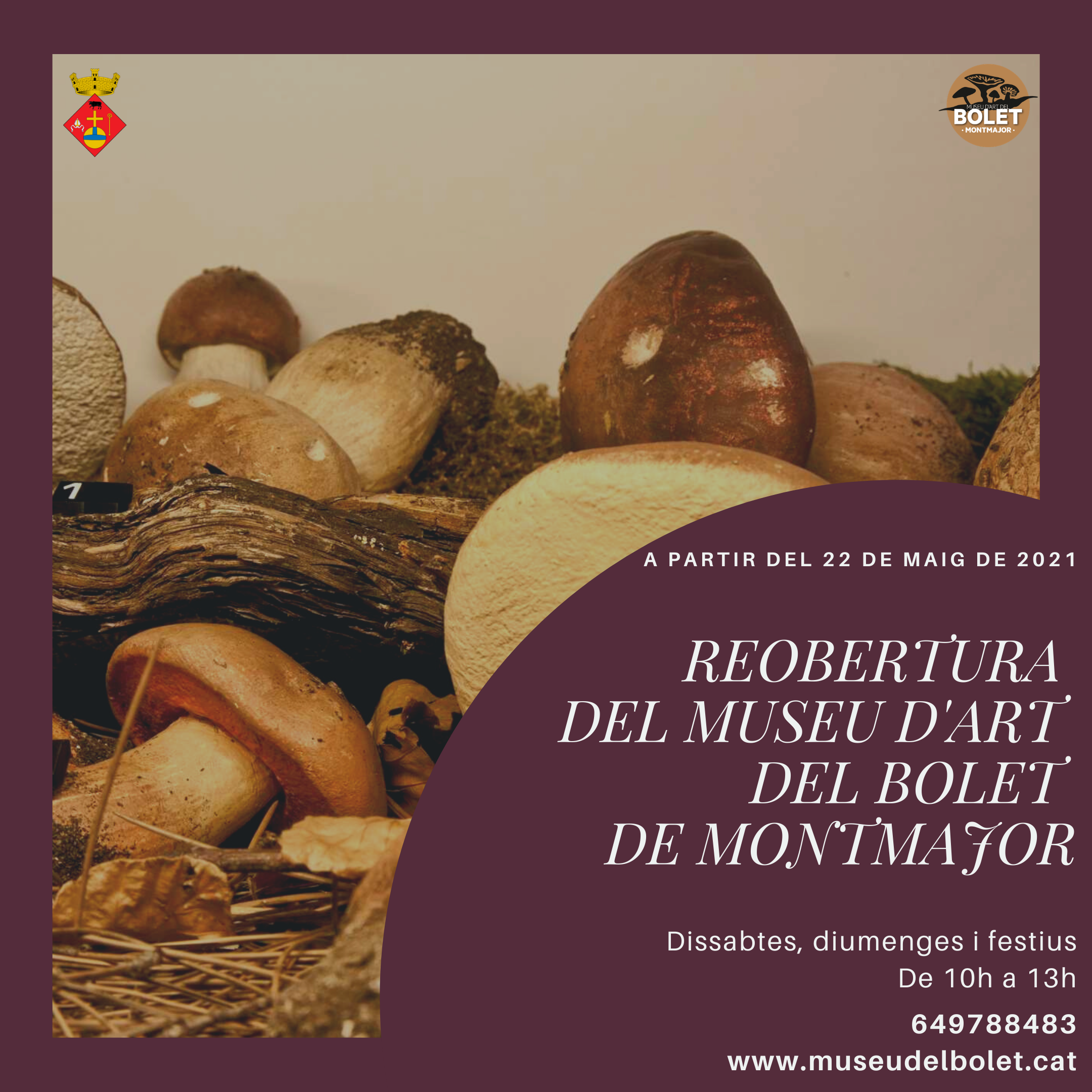 Recordem també que el Museu d’Art del Bolet va ser inaugurat el 18 d’octubre de 2003 i compta amb una col·lecció de més de 500 figures de bolets de ceràmica. La donació de les múltiples creacions de l’artista, la ceramista Josefina Vilajosana de can Gener de Tòlics de Gargallà, és un honor per Montmajor. De fet, és un projecte pioner i únic a nivell de Catalunya i de tot l’Estat espanyol, i molt probablement arreu d’Europa. En aquest sentit, el Museu de Montmajor té un valor comarcal, tant a nivell turístic com cultural, important. El repte de dinamitzar l’equipament, divulgar-lo i vetllar per a que rebi el merescut reconeixement, està viu. Recordem que el Museu s’obre de forma permanent els caps de setmana (dissabtes i diumenges de 10h a 13h) i entre setmana es realitzen visites amb concertació prèvia. T’animem a visitar-lo i a collir els bolets amb la mirada! Per a més informació: www.museudelbolet.cat