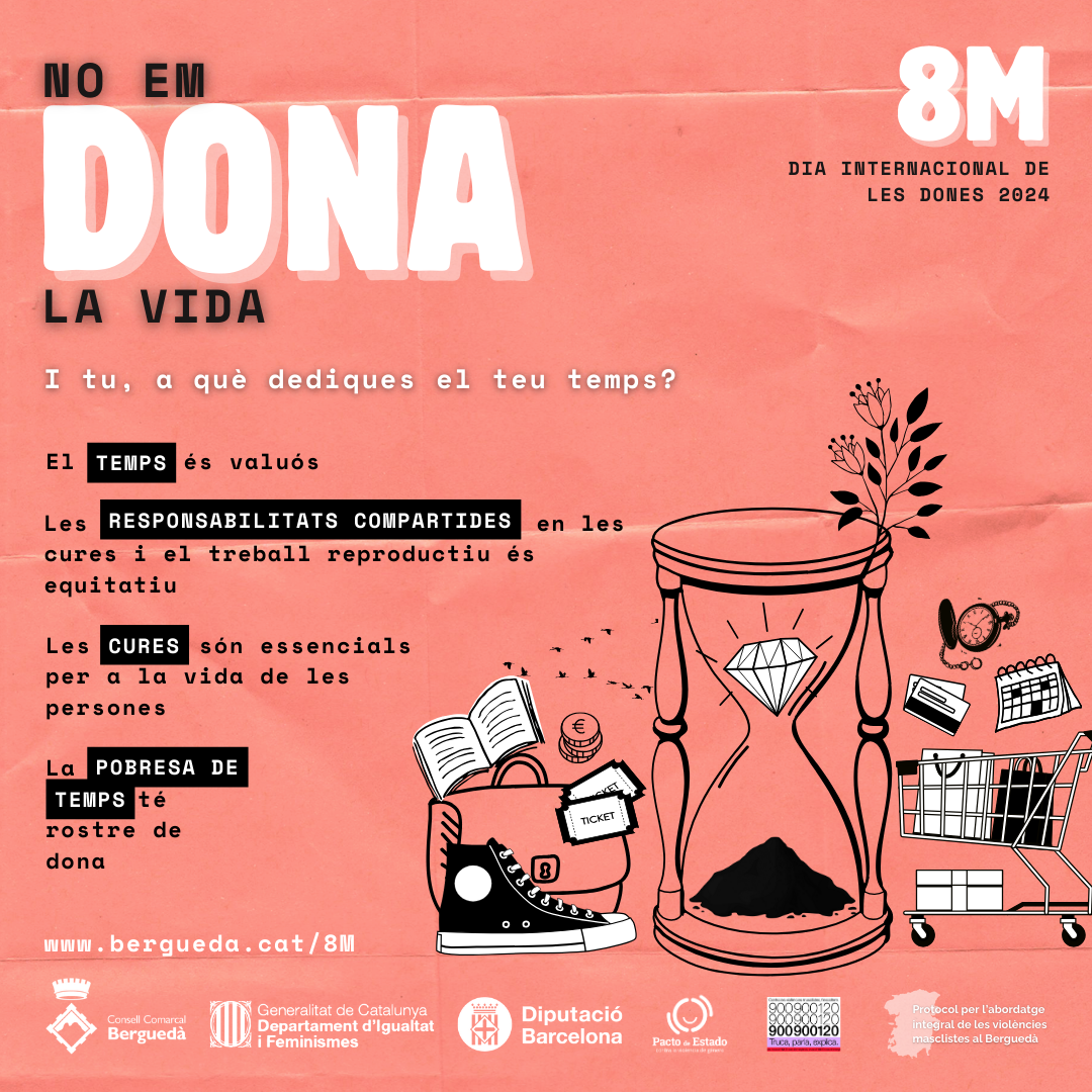 El Berguedà tornarà a ser un clam per a la igualtat de gènere entorn el 8-M, el Dia Internacional de les Dones. El Consell Comarcal del Berguedà llança enguany la campanya “#NOEMDONALAVIDA”, que pretén donar visibilitat a les cures i els usos del temps.
