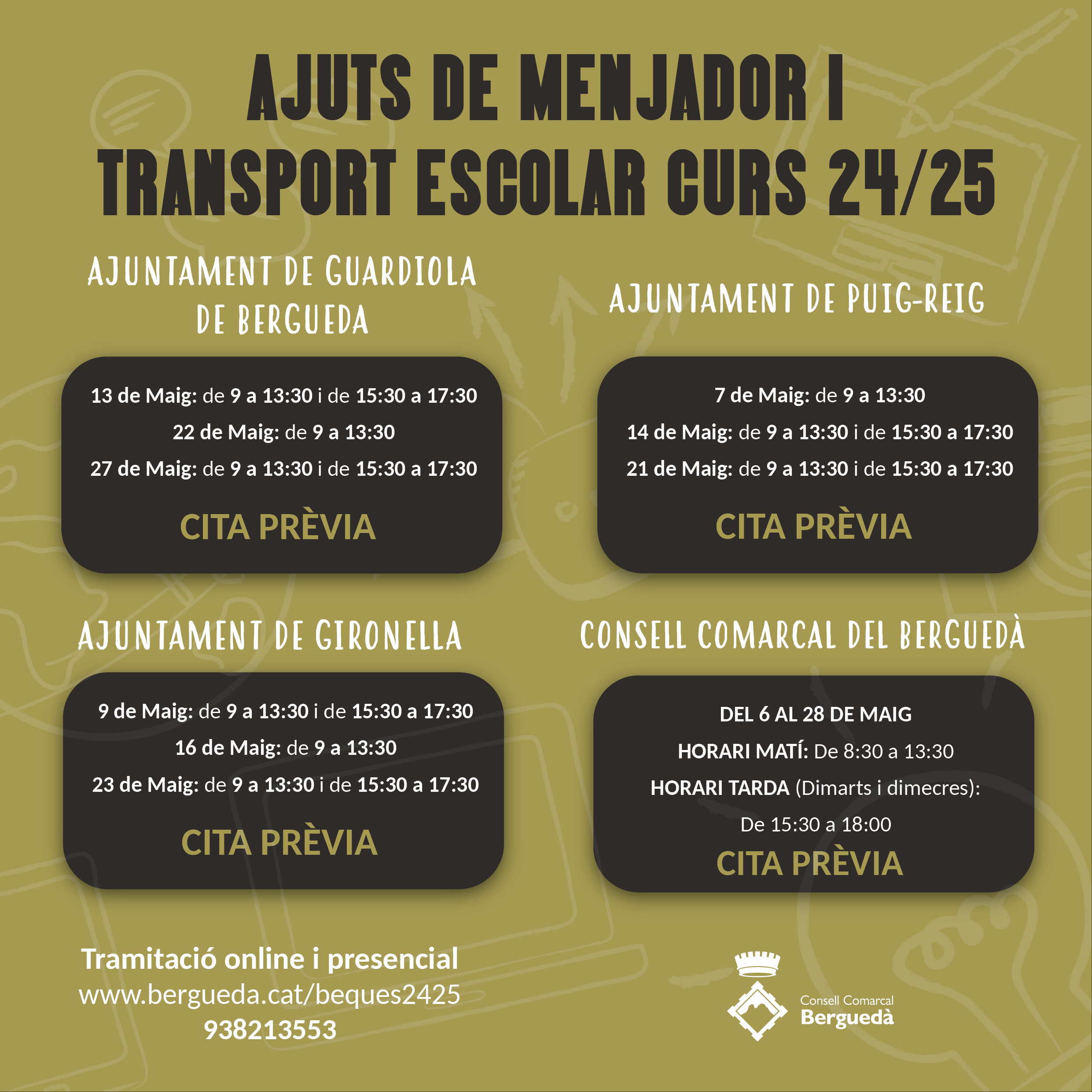 D’altra banda, les peticions també es poden formalitzar telemàticament clicant aquí: https://www.bergueda.cat/beques2425/