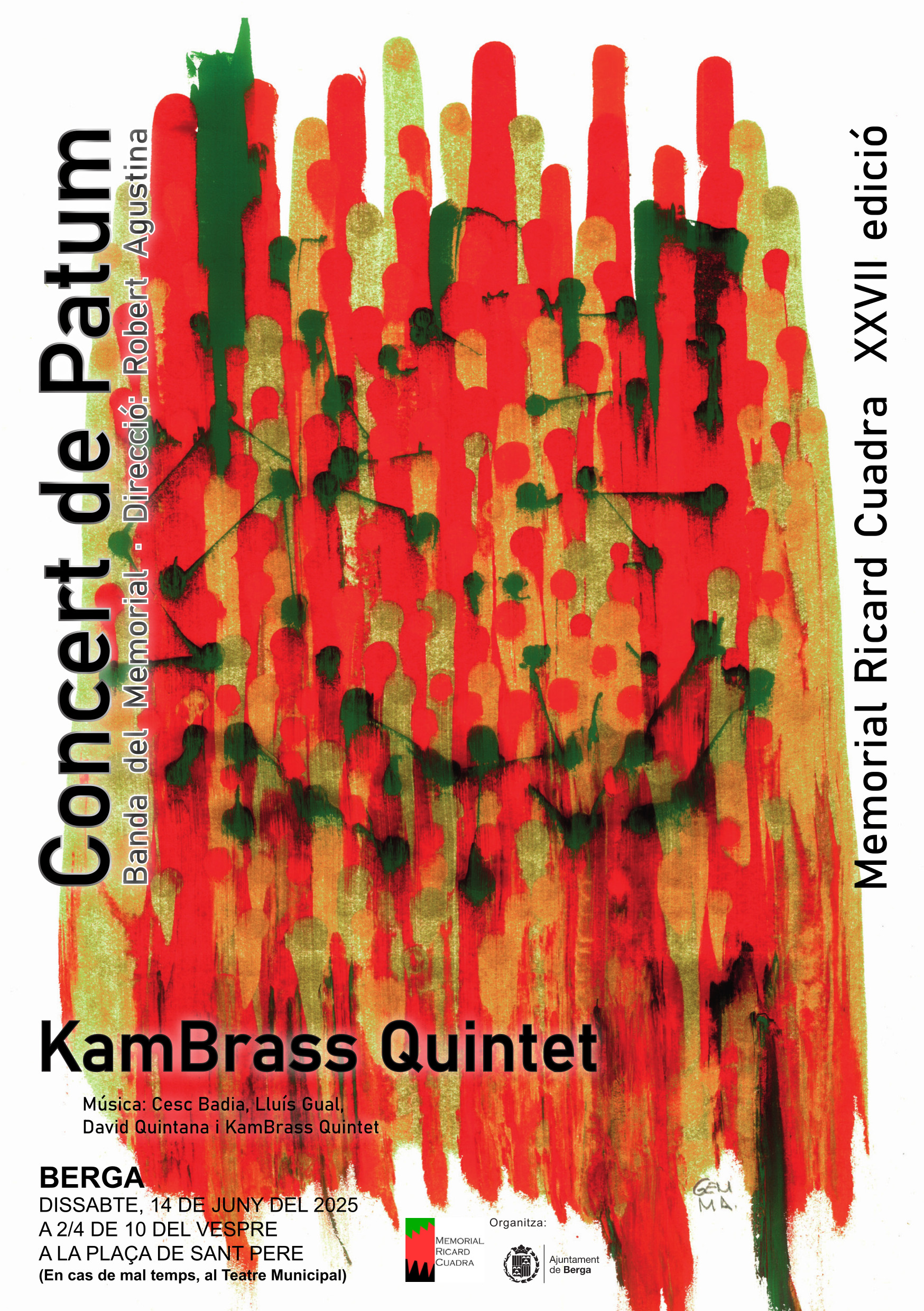 El XXVII Concert del Memorial Ricard Cuadra es farà el dissabte 14 de juny, a la plaça de Sant Pere, a les 21:30 h. En cas de mal temps, es traslladarà al Teatre Municipal. Les entrades anticipades es poden adquirir a l’Oficina de Turisme de Berga (C/ Àngels, 7) i també es podran comprar a les taquilles habilitades als accessos de la plaça abans de l’inici de l’espectacle. El preu és de 15 € amb cadira i 10 € sense cadira.